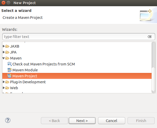 Agora vamos criar um projeto maven no eclipse, utilizando o wizard: