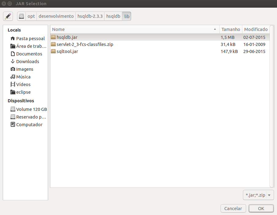 E selecione o hsqldb.jar, que no meu caso está em /opt/desenvolvimento/hsqldb-2.3.3/hsqldb/lib